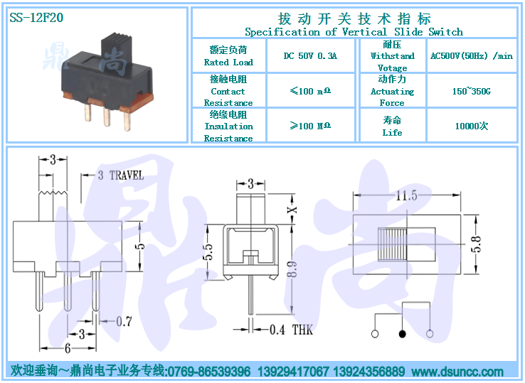 圖紙下載 產(chǎn)品型號(hào):SS-12F20 產(chǎn)品名稱:拔動(dòng)開(kāi)關(guān)Slide Switch